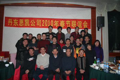 2010年2月10日,丹東思凱公司全體員工在五龍背溫泉賓館舉行“丹東思凱公司2010年春節(jié)聯(lián)誼會”。聯(lián)誼會上公司總理經(jīng)鄭孚先生做了重要講話,總結回顧了2009年取得的成績,部署了2010年的工作與任務;并對2009年度取得突出成績、作出貢獻的部門及先進個人進行了獎勵表彰。