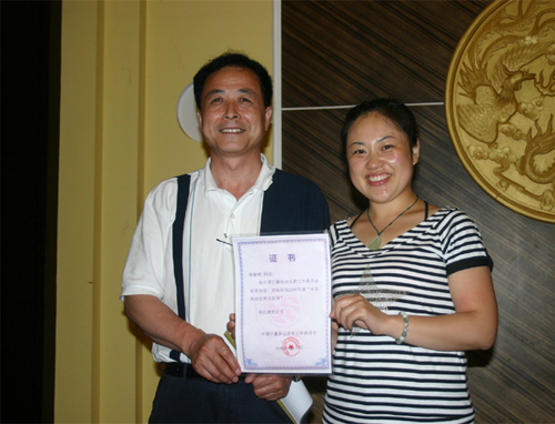 水表工作委員會(huì)副主任委員閆少堅(jiān)(左)為優(yōu)秀信息員李曉明(右)頒發(fā)證書
