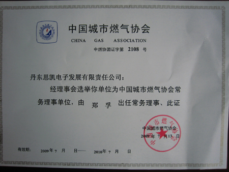 丹東思凱電子發(fā)展有限責(zé)任公司經(jīng)理事會(huì)選舉為中國(guó)燃?xì)鈪f(xié)會(huì)常務(wù)理事單位,由我公司的鄭孚總經(jīng)理出任常務(wù)理事。